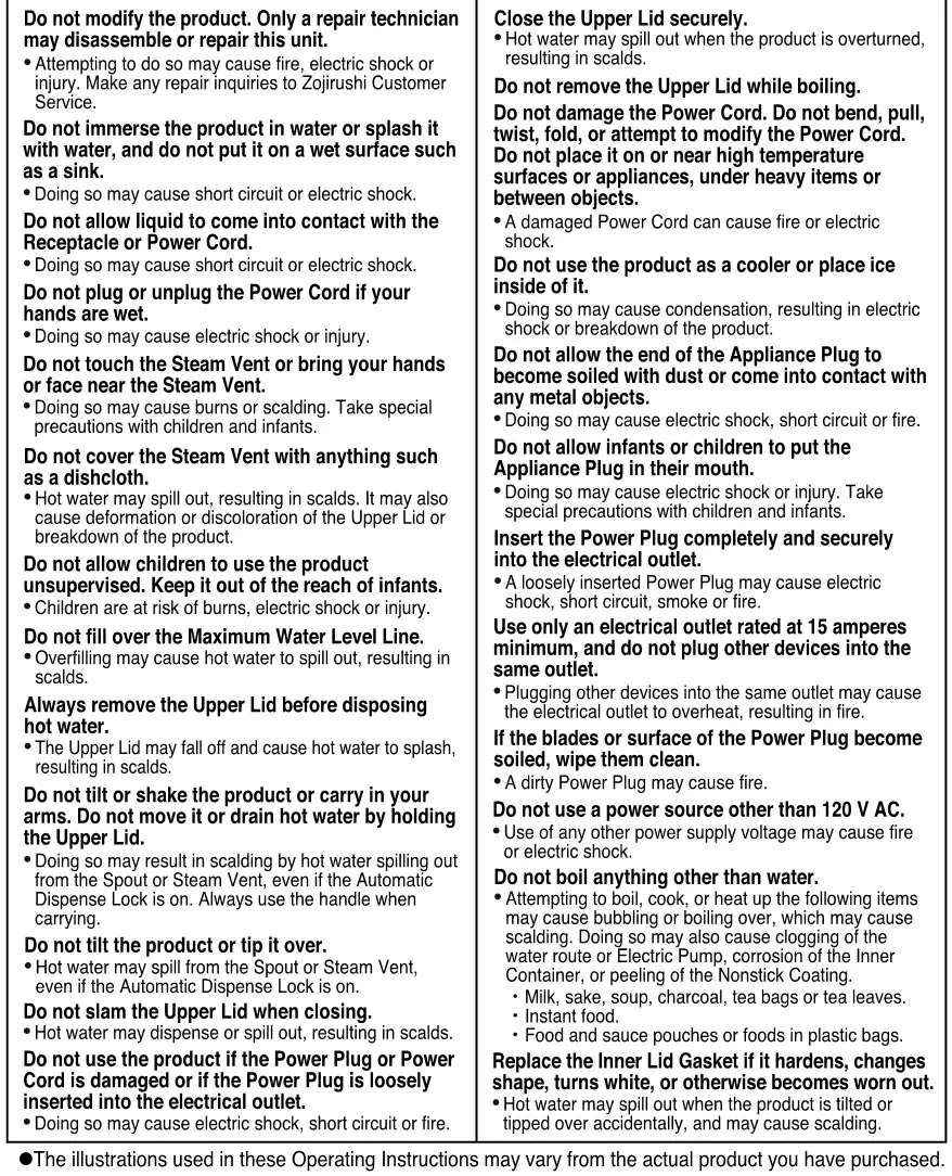 - When replacing parts, please record the model number and part name beforehand. Then contact Zojirushi Customer Service. Zojirushi Customer Service 1-800-733-6270 www.zojirushi.com